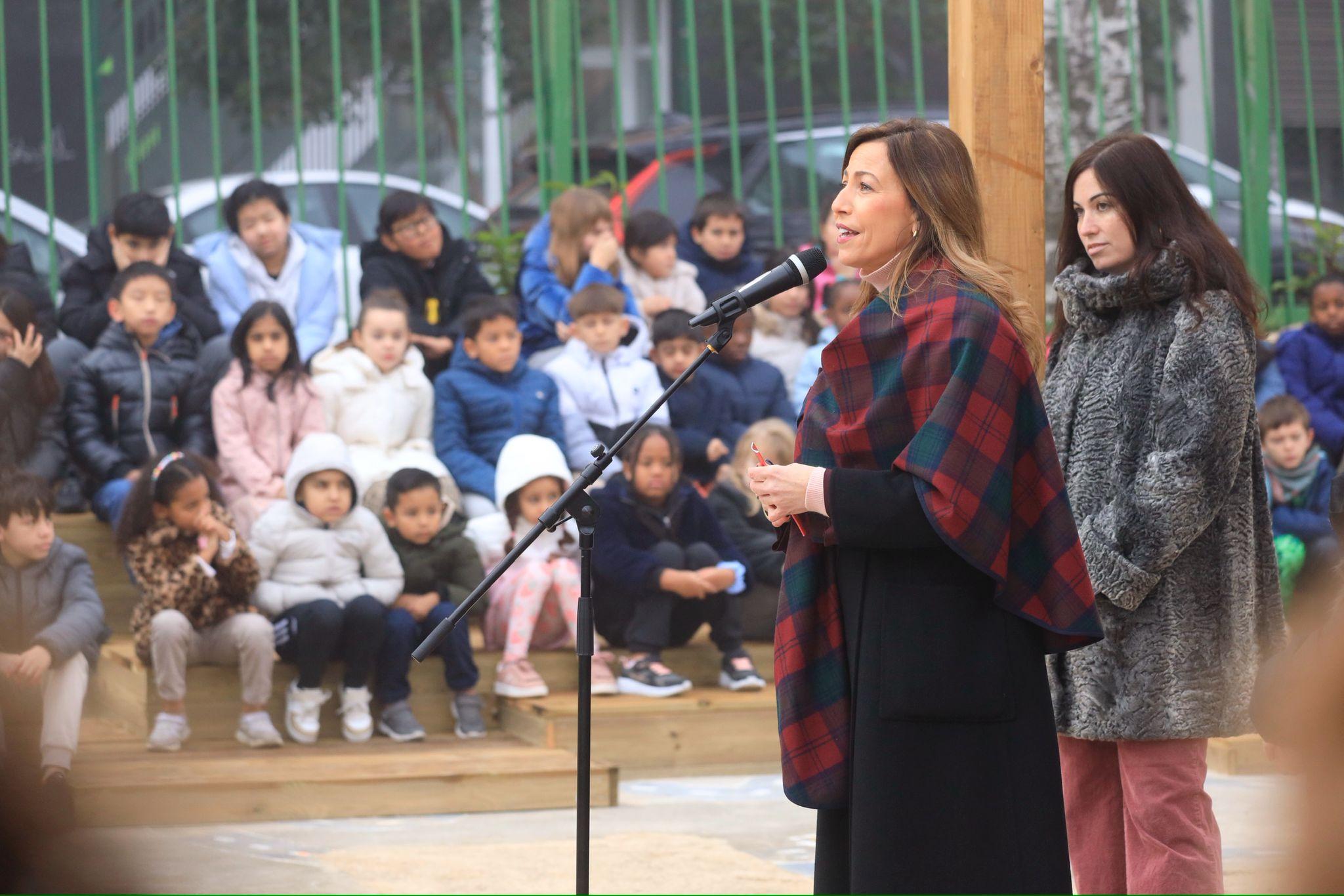 La alcaldesa de Zaragoza, Natalia Chueca, ha visitado hoy el centro escolar de Las Fuentes, donde se ha trabajado en la eliminación de zonas de hormigón y la plantación de 17 nuevos árboles