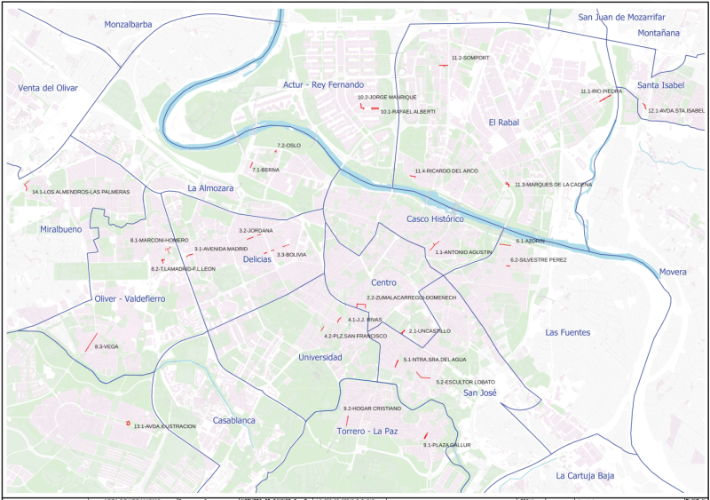 Si se atiende al reparto de calles por distritos, las zonas con mayor número de metros cuadrados de renovación asfáltica serán El Rabal, con 4.753 m², seguido de Actur Rey Fernando, con 2.673 m², Delicias con 2.599 m² y Oliver Valdefierro con 2.598. Les siguen San José, con 2.319 m², Centro con 2.197 m² y Torrero con 2.003 m². El listado completo por distritos de las actuaciones propuestas para la Operación Asfalto 2026 es el siguiente: