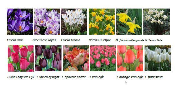 El proyecto ha incorporado en los últimos años nuevas combinaciones, sumando a los tulipanes y narcisos, presentes en el Parque Grande otras especies como los crocus, alliums y fresias. Se han preparado combinaciones con tonalidades diferentes, cada una de ellas con dos o más especies para alargar al máximo la floración.