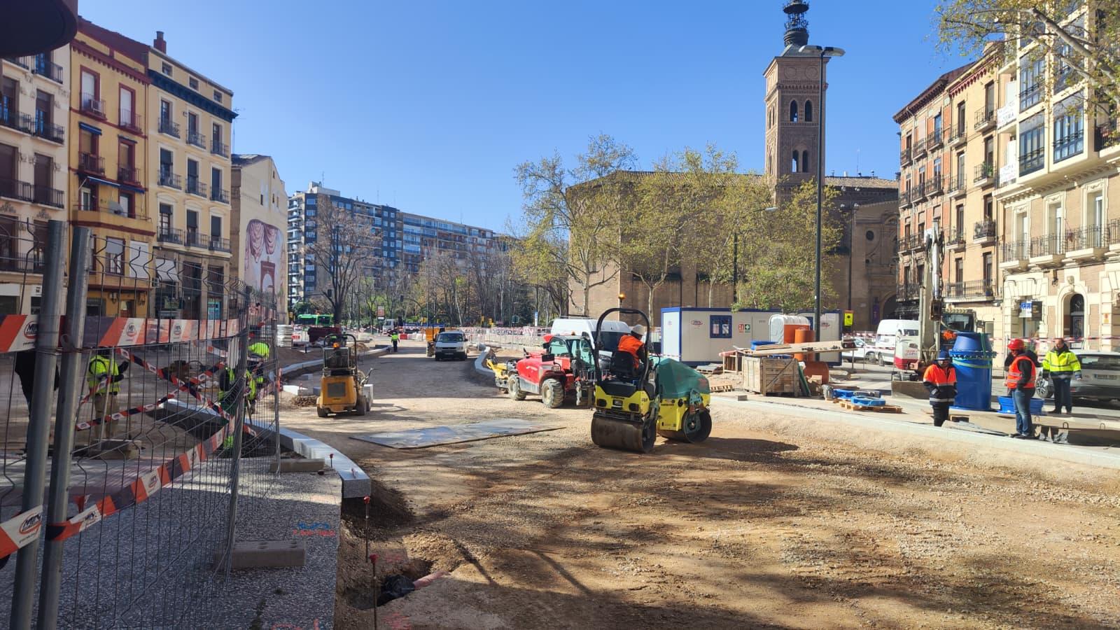 Las tareas se centran en terminar, en primer lugar, la nueva calzada de la plaza, que se reabrirá al tráfico a final mayo, un elemento clave en la movilidad para poder continuar las obras en el Coso alto