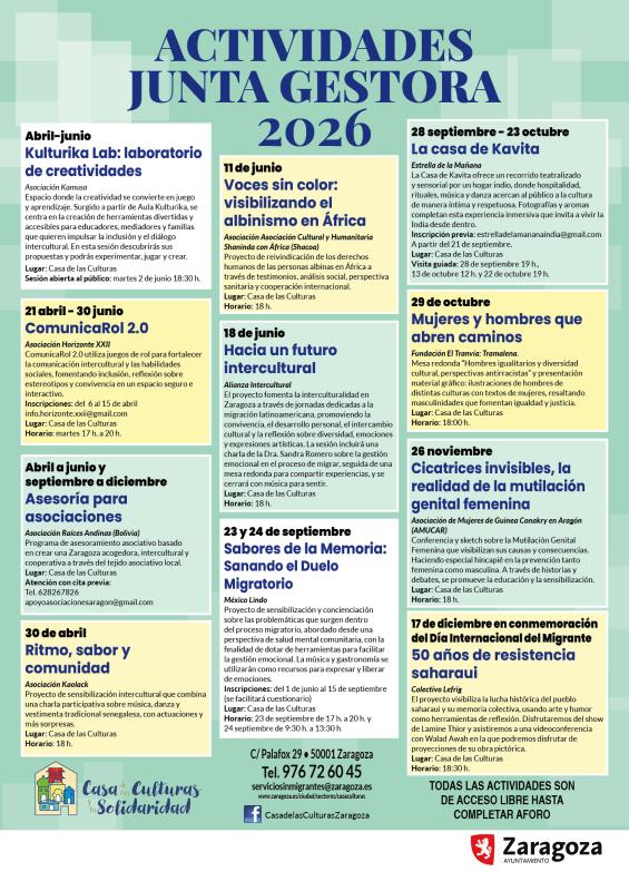 La Casa de las Culturas y la Solidaridad del Ayuntamiento de Zaragoza inicia este mes de abril una amplia programación de actividades que responde a uno de sus principales objetivos: promover la participación activa de las asociaciones de personas migrantes, gitanas y entidades sociales que forman parte de su Junta General.