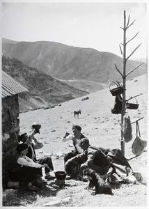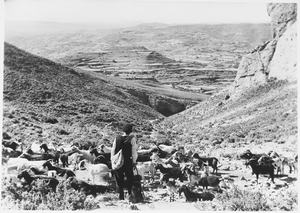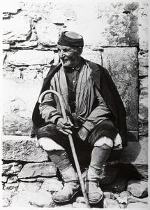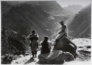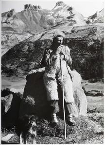 VILLANÚA. PASTOR EN "GABARDITO". AL FONDO LOS PICOS DE LECHERIN (Compairé Escartín, Ricardo)